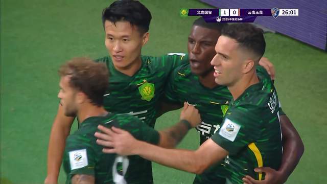比赛开场第7分钟,杨立瑜传中直接出了底线,国安高位逼抢强度很大,云南玉昆的进攻相对简单有效,三传两递推进到前场,主打反击。比赛第12分钟,杨立瑜后排插上头球攻门,马镇扑救脱手,第二反应很快控制住了皮球。北京国安的战术有了明显变化,减少中路无效传控,寻求两个边路突破传中,也终于得到了一定效果,率先进球。